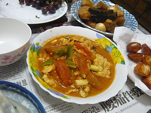 以前做蕃茄炒蛋,一直以為蛋較容易熟,蕃茄炒久些營養素才能出來,所以先放蕃茄再放蛋,炒出來一盤黑黑焦焦的蛋變碎碎的,真是難看。